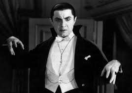 Think of the classic vampire. Fangs, of course. Drinks human blood for sustenance. Pale-skinned. Some kind of eastern European accent. He - because he's certainly a he - wears a suit and maybe a cape, something in black and/or red. Sleeps in a coffin, can turn into a bat. Has no reflection in the mirror, can only be killed by a silver bullet or a wooden stake through the heart.